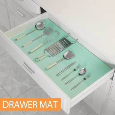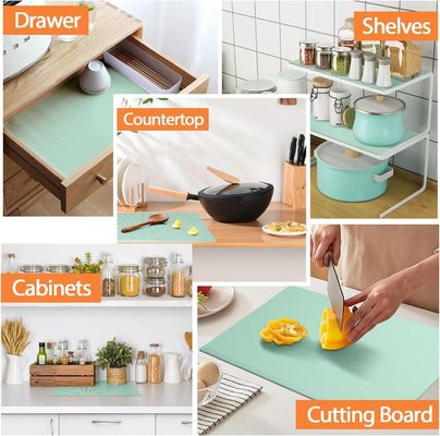كل بطانة ناعمة ومرنة وسهلة القص إلى أحجام مختلفة، مما يجعلها مناسبة تمامًا لمختلف المساحات بما في ذلك أرفف الثلاجة وأدراج الخضروات والخزائن وأسطح المطبخ. يضمن الملمس غير القابل للانزلاق بقاءها في مكانها حتى مع وجود الجرار والحاويات الثقيلة في الأعلى.