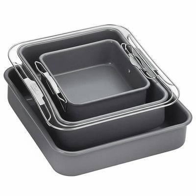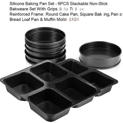 يتضمن طقم الخبز المصنوع من السيليكون الاحترافي الخاص بنا صينية كيك مستديرة، وصينية خبز مربعة، وصينية خبز خبز، وقوالب كعك - جميعها تتميز بمقابض وإطارات معدنية مقواة من أجل المتانة وسهولة التعامل.